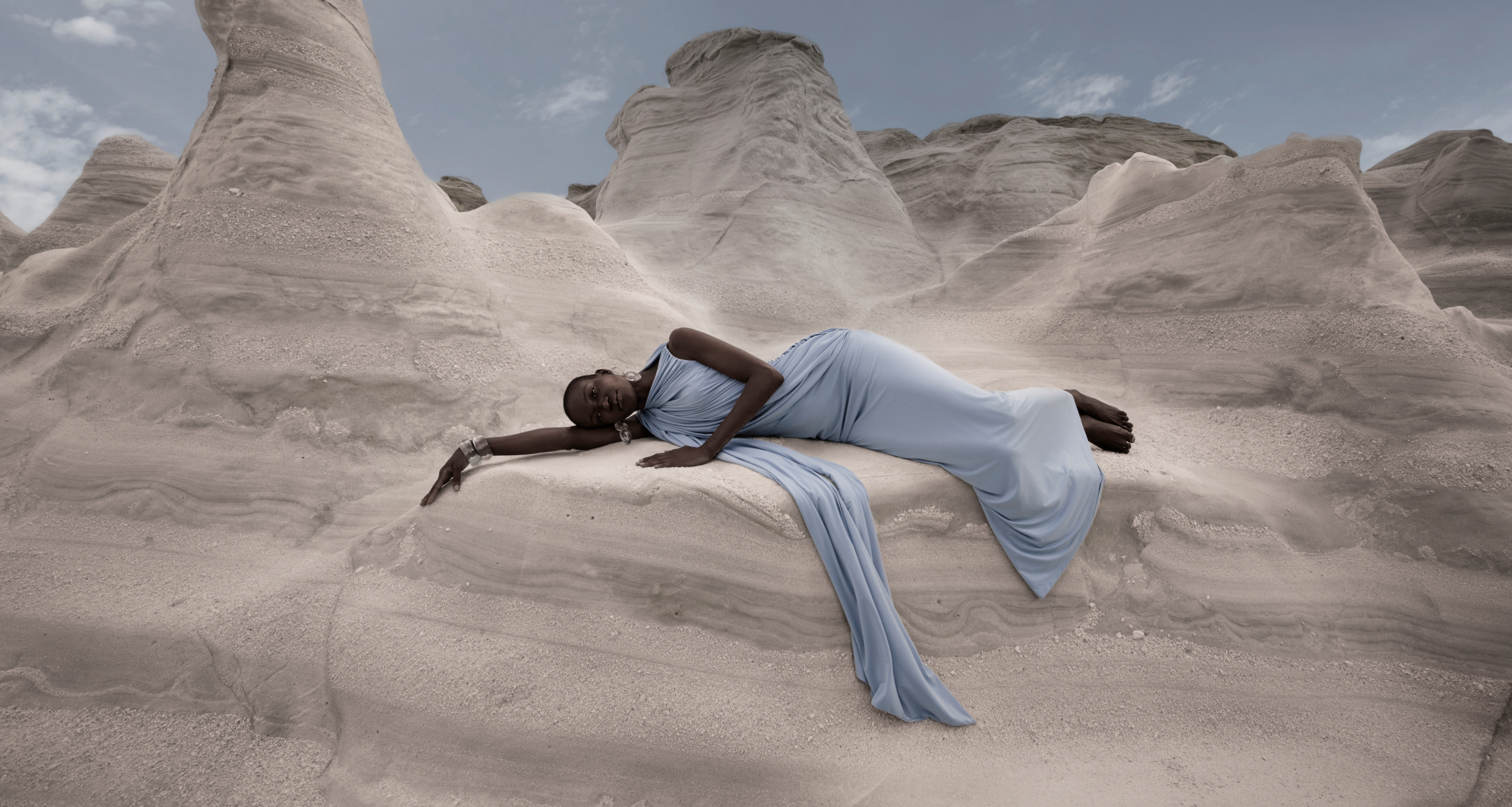 Muted sage and mineral blues - drawn from layered rock formations, mineral surfaces, and the quiet movement of water across stone - form the colour story of NEHR. Grounded, considered, and quietly striking.