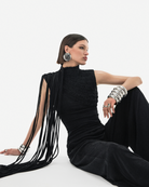 The Kaima top in black is crafted from a luxurious slinky textured jersey that offers exceptional stretch for ultimate comfort. Inspired by our best-seller Kaphordite dress, this top features adjustable strings on the right shoulder, allowing for a customizable fit while maintaining a sleek, fitted silhouette. With its super stretchy fabric and true-to-size fit, the Kaima top effortlessly combines style and versatility, making it a perfect addition to any wardrobe.