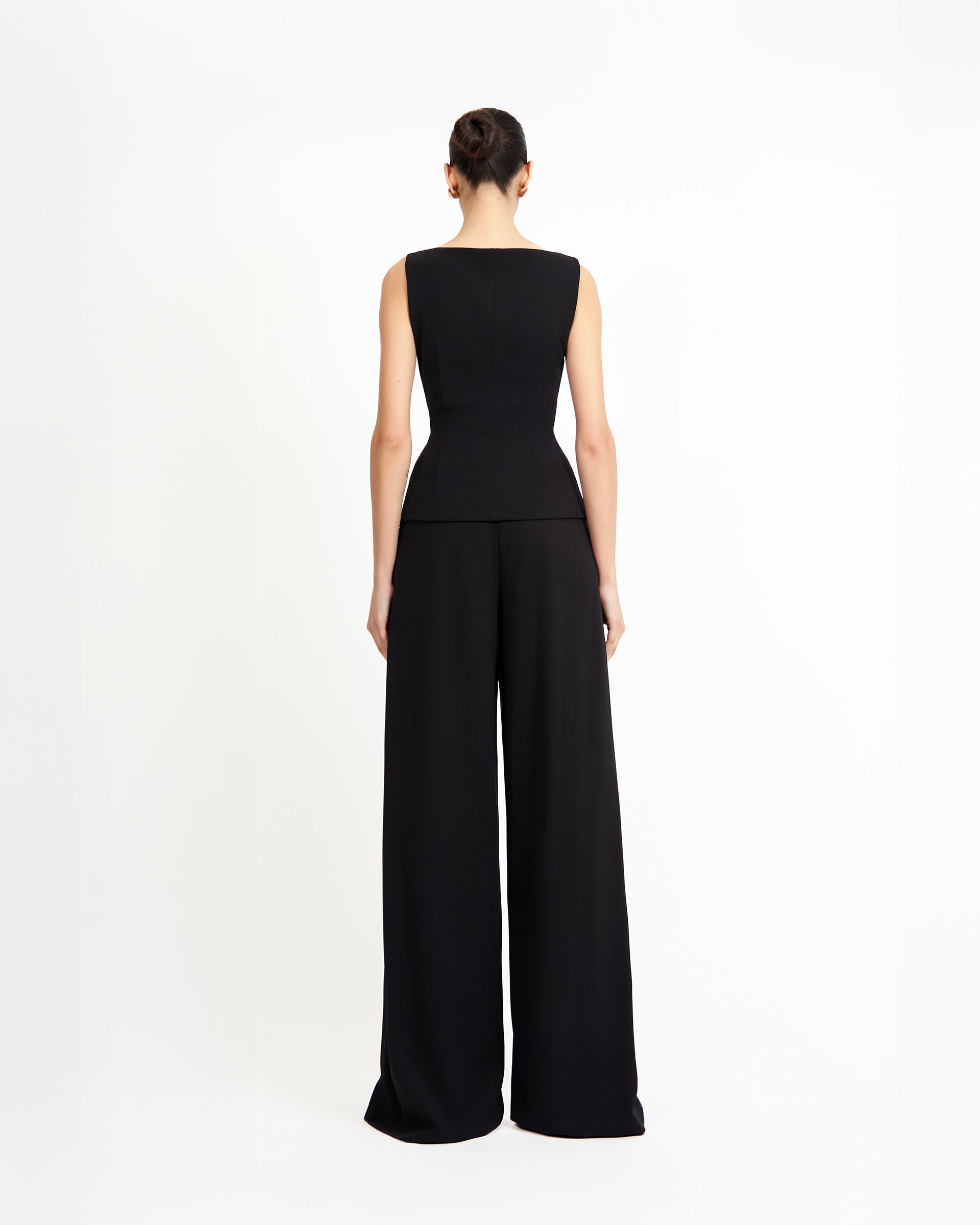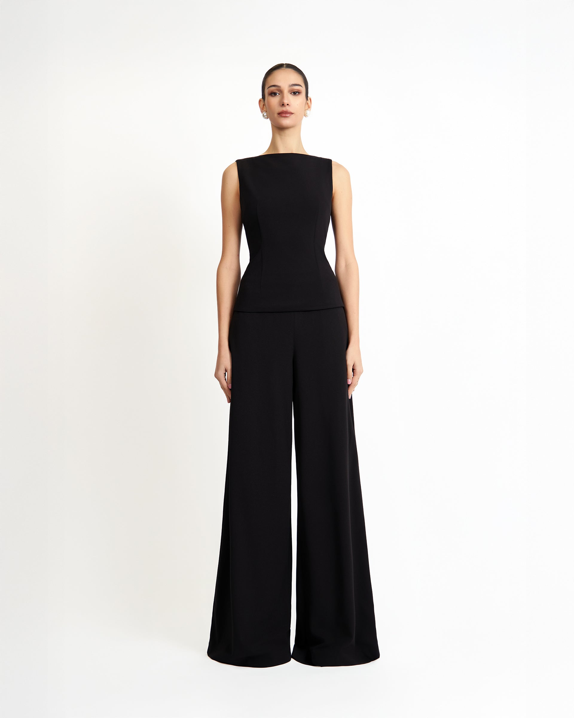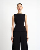 The Kastrid top is a modern masterpiece, exuding effortless elegance for the modern bride. Crafted from luxurious crepe satin, this sculpted top features a straight boat neckline, adding a touch of luxury to your wedding look. Its flattering fit ensures a timelessly sophisticated style, making it a perfect choice for a bride who values both comfort and elegance on her special day.