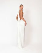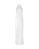 The Kemily dress is a striking silhouette, which is adorned with our signature details of pearl straps across the back, turning it into a statement. Made from figure-skimming stretch satin, this dress is designed with a high neck, skin-baring cutout across the back and a smooth flow across the lower dress. Wear yours with statement gold accessories to finish the look.