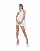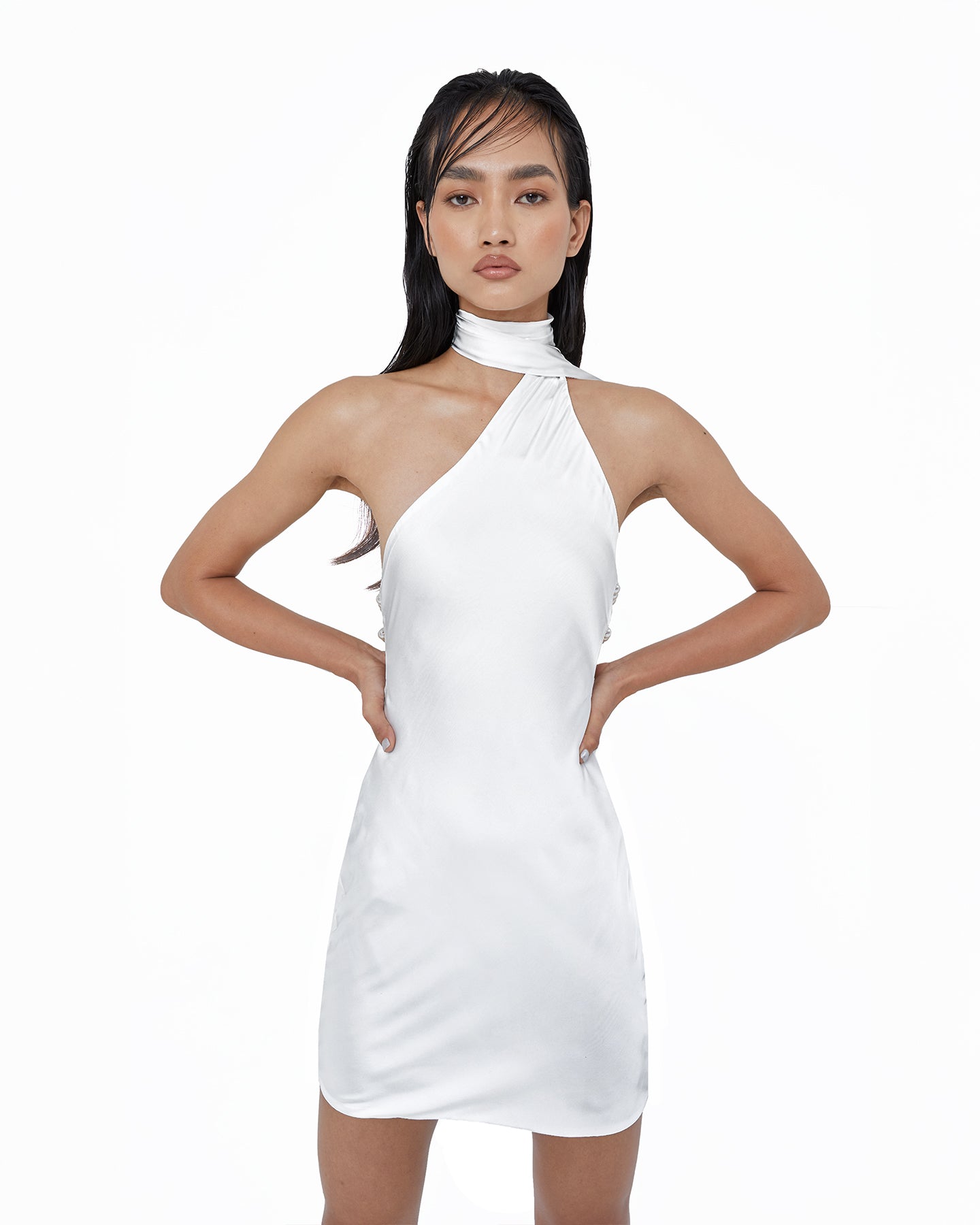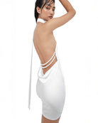 Suitable for any occasion, Kushi is just enough to make jaws drop. The fluidity of the silk satin fabric is elevated by the low back supported by the pearl rope detail. The draped design is defined by our scarf accent, a perfect final touch that ties the look together.