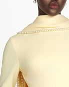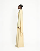 The Krace dress in butter yellow is the epitome of timeless elegance and refined beauty. Crafted from crepe scuba, it features slightly flared sleeves and an A-line silhouette that skims the figure perfectly. The scarf is detached from the dress to allow multiple ways to style, and is finished with a delicate pearl trim, imparting a touch of exquisite luxury. Pair with heels to allow the floor-length hem to sweep with poise and grace.