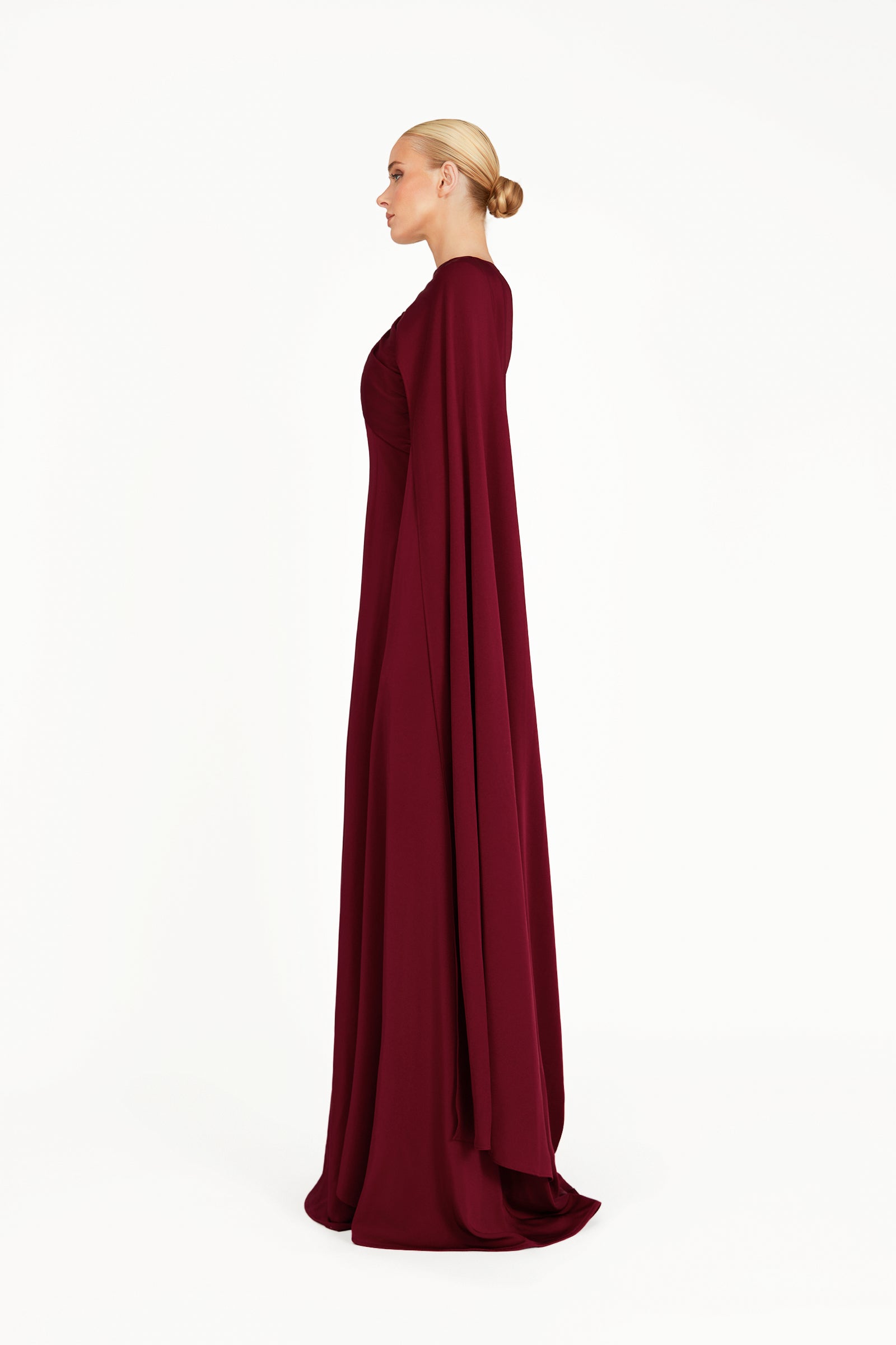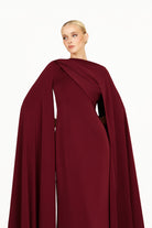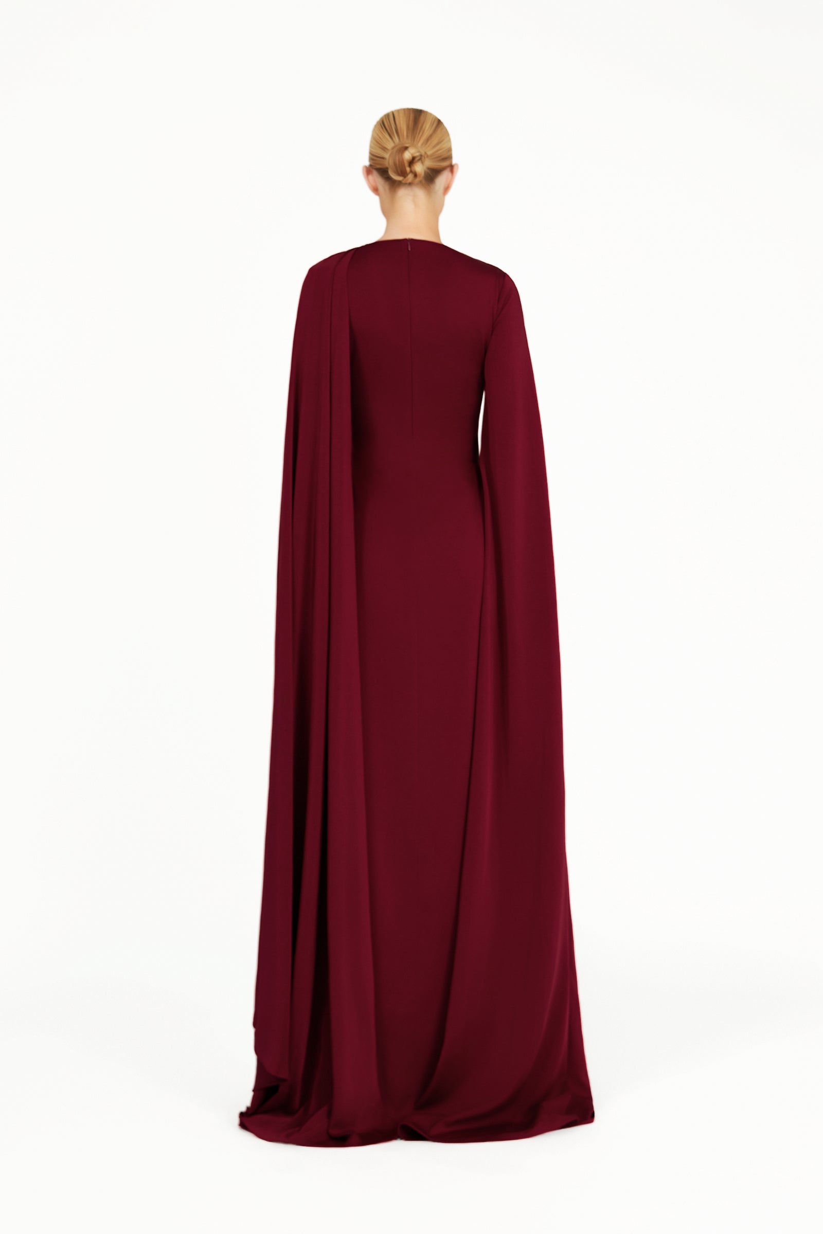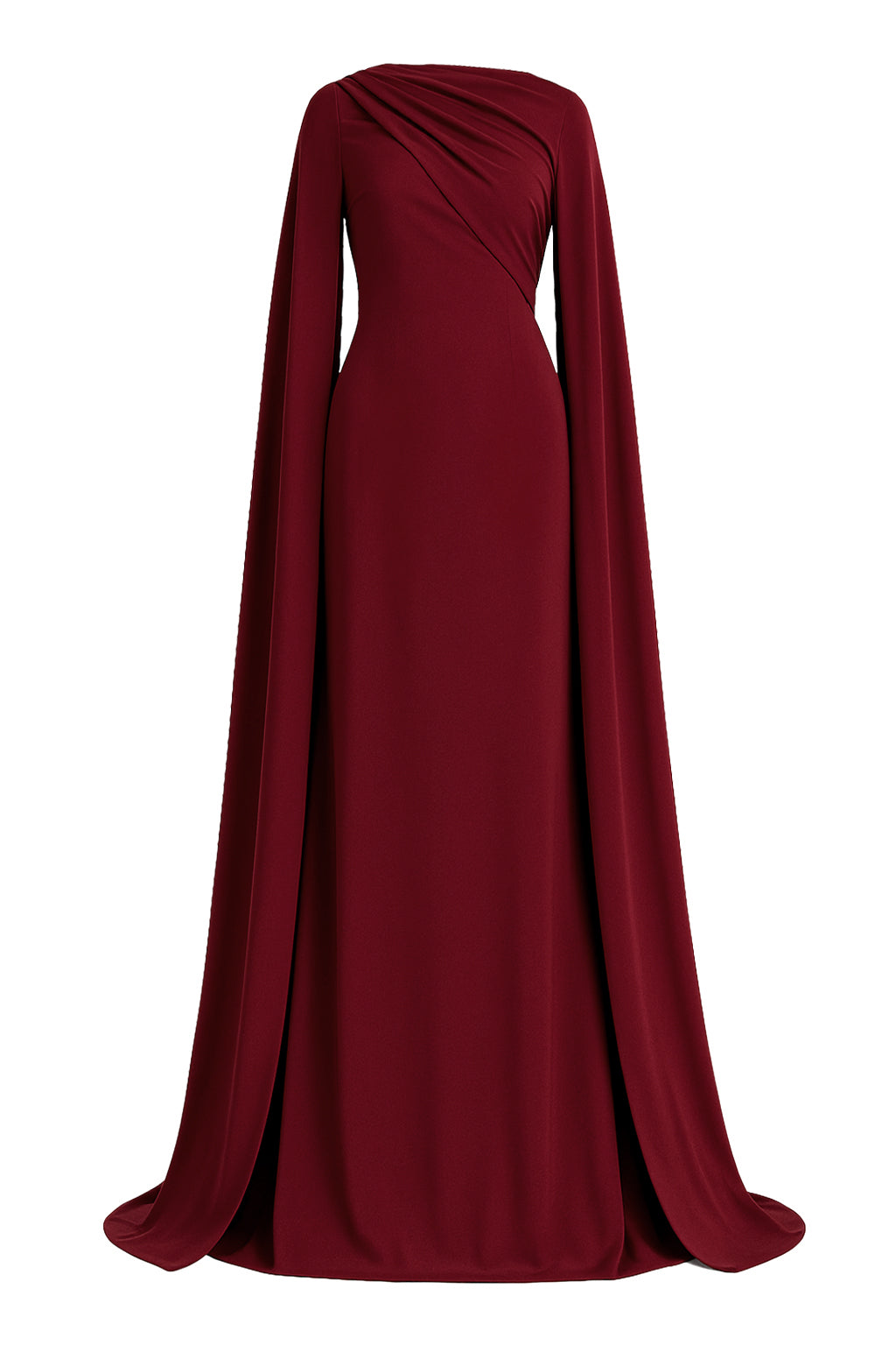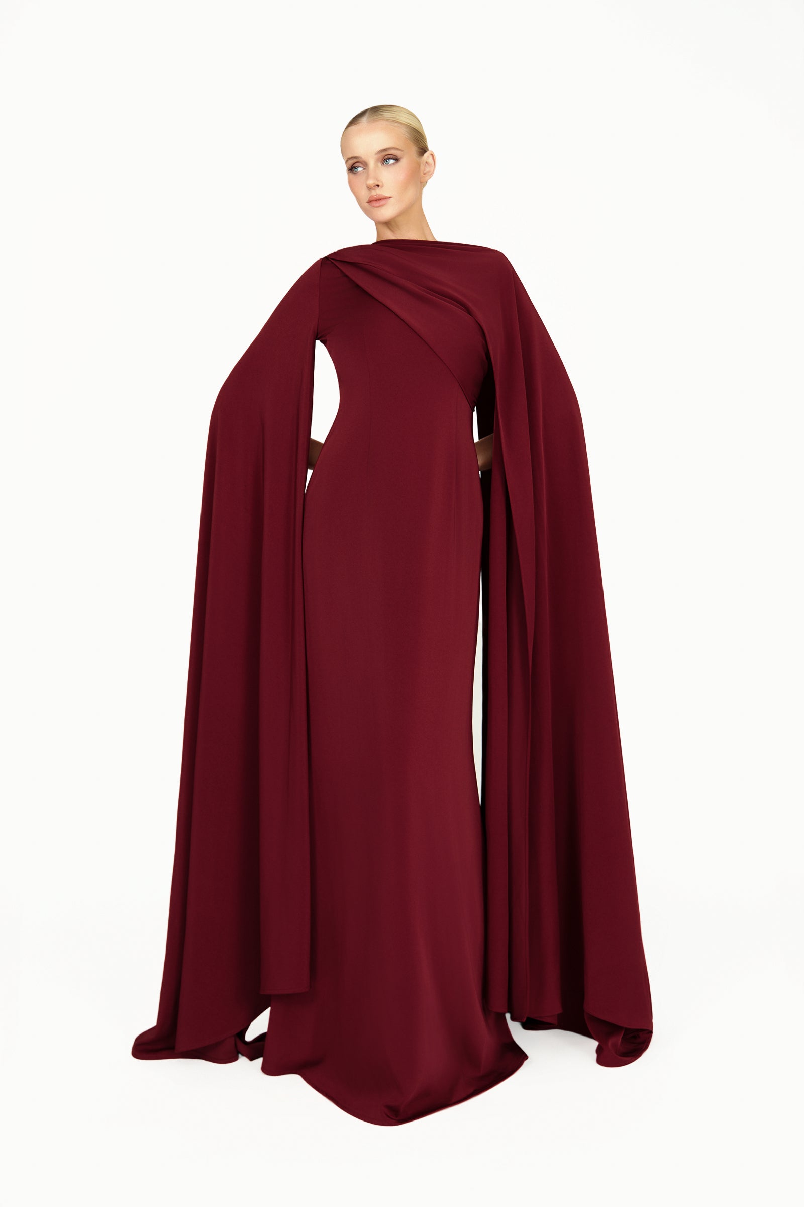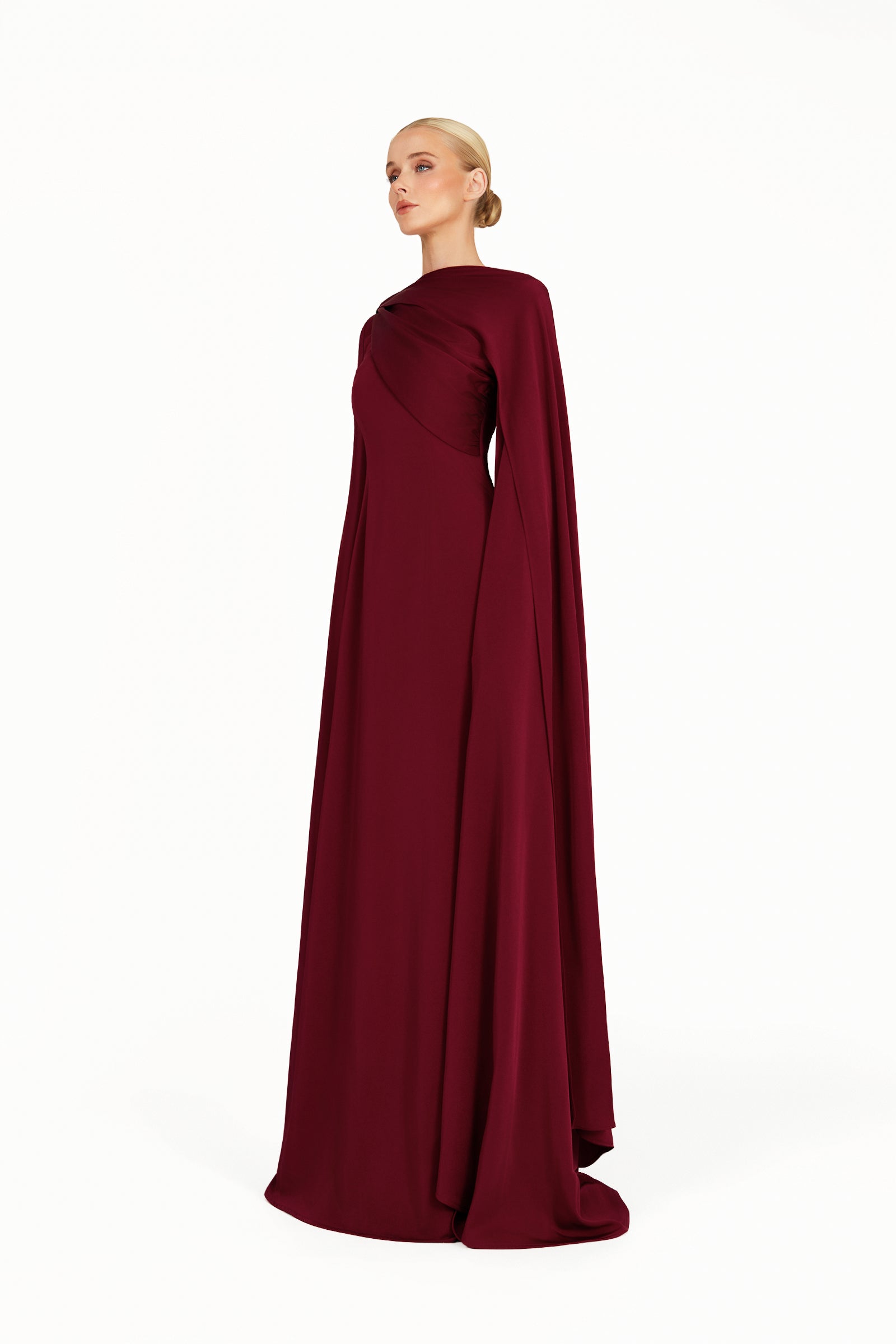 Introducing the Korello Dress in red, a graceful balance of refinement and modern sophistication. Crafted from luxurious satin, this dress features long, flowing sleeves and a softly gathered neckline, offering elegant coverage while framing the shoulders beautifully. The gentle A-line silhouette falls fluidly, creating a timeless shape that feels both contemporary and classic. Designed to flatter with its smooth, flowing fabric, the Korello Dress embodies understated luxury and chic simplicity.