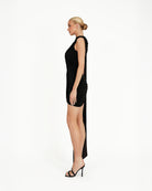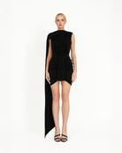 Introducing the Kemmiye Mini Dress in black, a perfect blend of modern elegance. Made from luxurious fabric, this sleeveless mini dress features a softly draped scarf neckline and gathering throughout, offering graceful coverage while creating a flattering, flowing silhouette. The asymmetric neckline and textured finish add subtle interest, giving the dress a chic, contemporary feel. The Kemmiye Mini Dress is ideal for evening events, special occasions, or any moment you want to make a stylish impression.