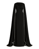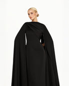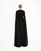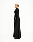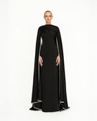 Introducing the Korello Dress in black, a graceful balance of refinement and modern sophistication. Crafted from luxurious satin, this dress features long, flowing sleeves, a softly gathered neckline, and delicate pearls on the trim, offering elegant coverage while beautifully framing the shoulders. The gentle A-line silhouette falls fluidly, creating a timeless shape that feels both contemporary and classic. Designed to flatter with its smooth, flowing fabric, the Korello Dress embodies understated luxury and chic simplicity.