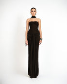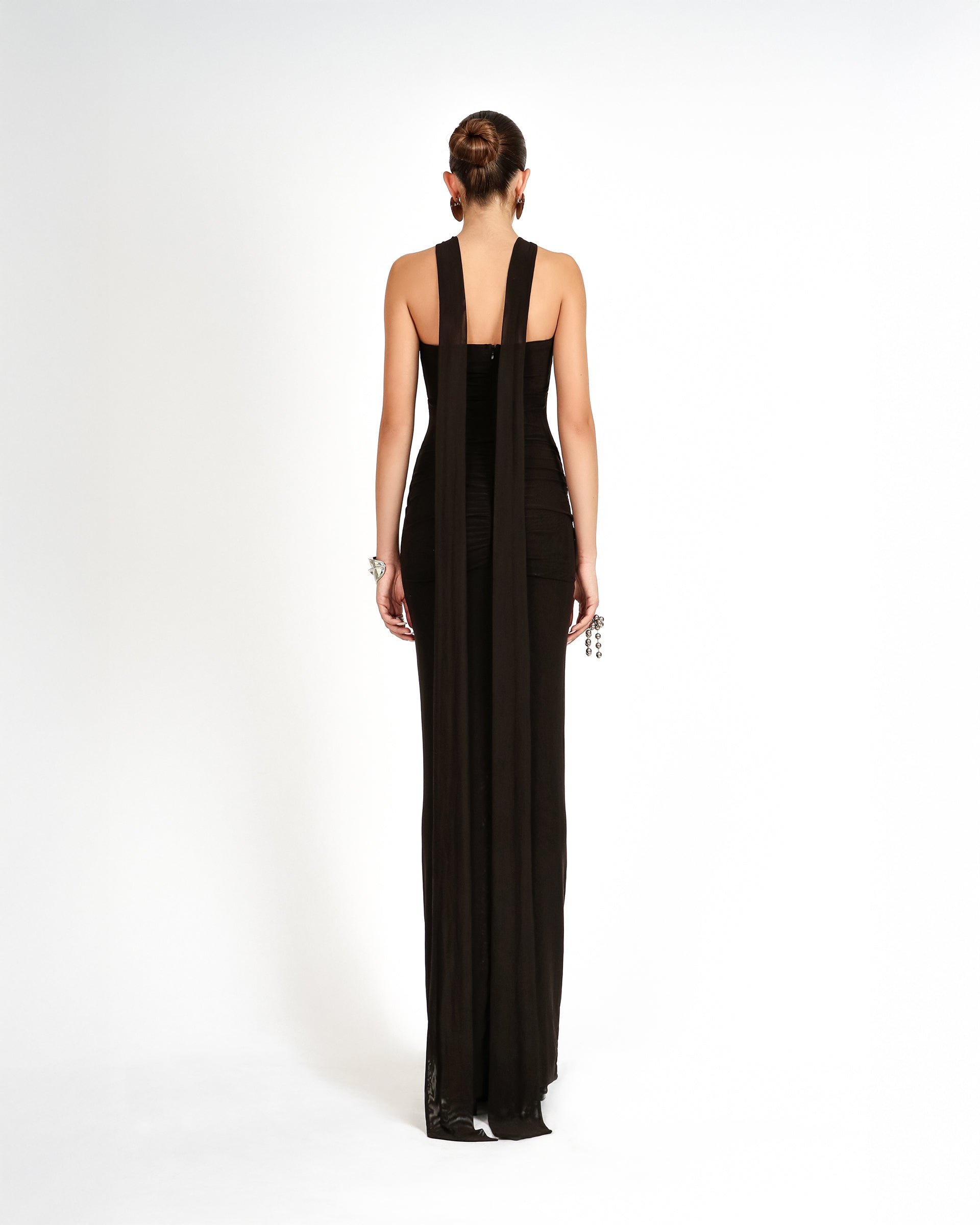 With its all-over glittering twinkling sheen and lush colour, our Kesca dress will ensure all eyes are on you when you walk into the room. It's made from super-sheer mesh, ruched across the back with a wrap around detail to ensure the close fit flatteringly hugs your curves. Kesca comes with a slim scarf detail to create the illusion of modern halter. This dress calls for cascading earrings and lots and lots of bangles. Warning; all eyes will be on you.