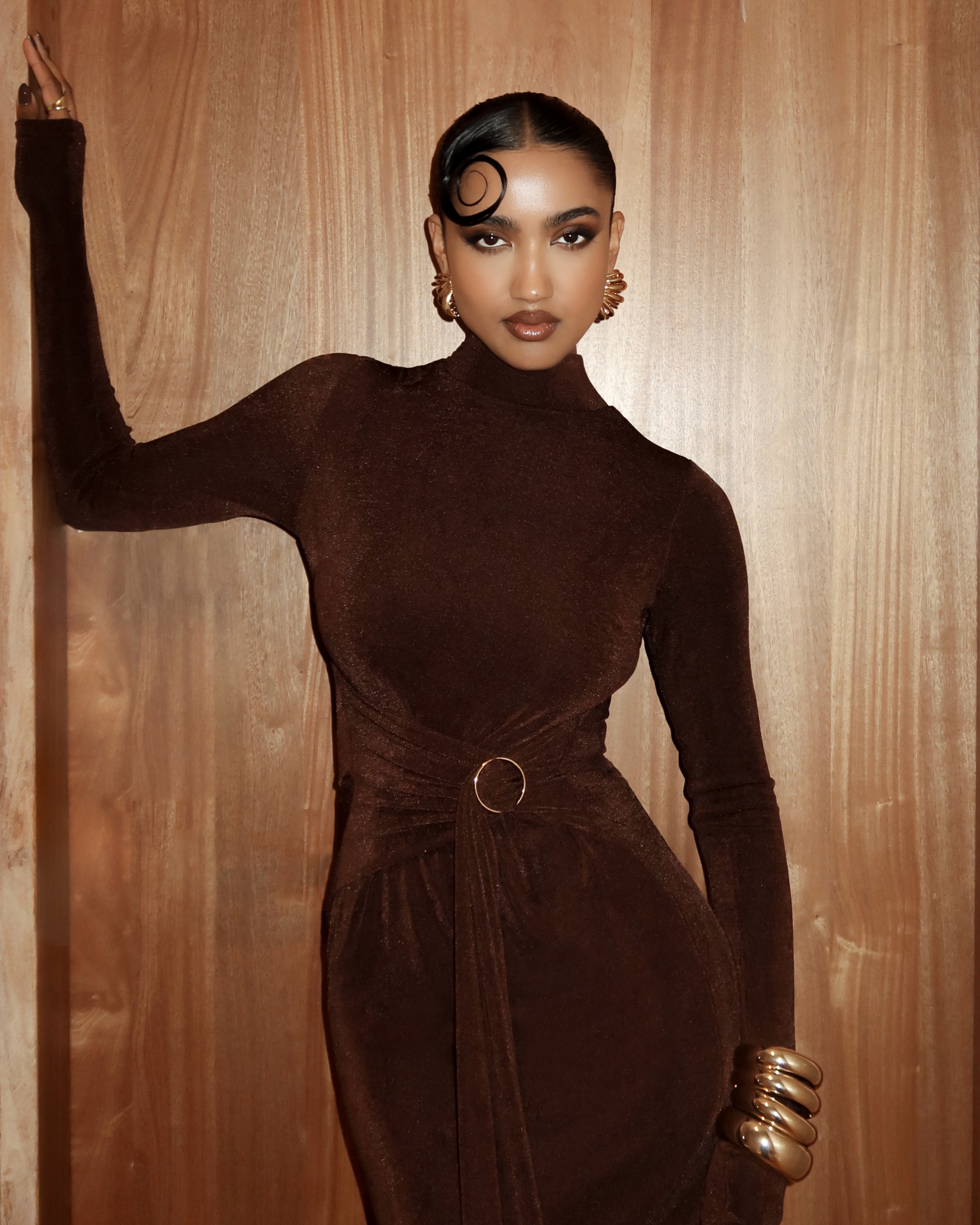 The Khrissy dress takes inspiration from the timeless elegance of the '60s and '70s, making it an ideal choice for the party season. Crafted in London by skilled artisans, it’s made from slinky textured lycra that elegantly drapes over your frame, creating a sleek and sophisticated silhouette. Perfect for evening events or New Year's celebrations, the Khrissy dress shines when paired with statement earrings or bold accessories. Get ready to turn heads and light up the night.