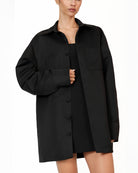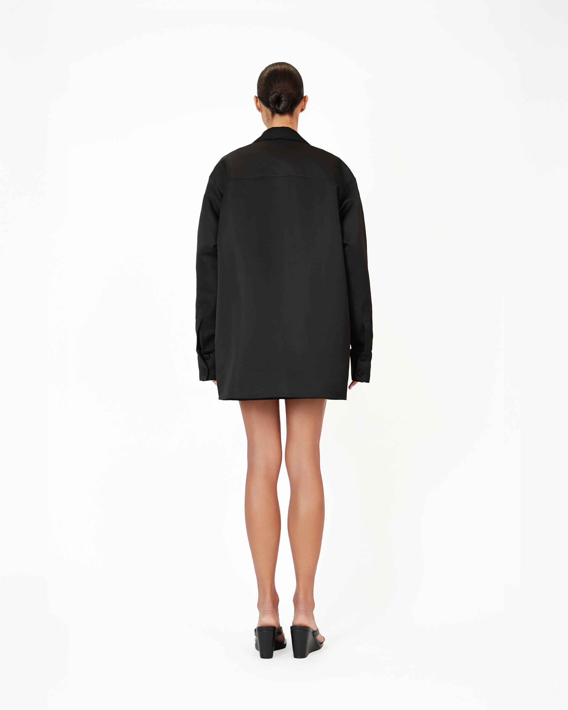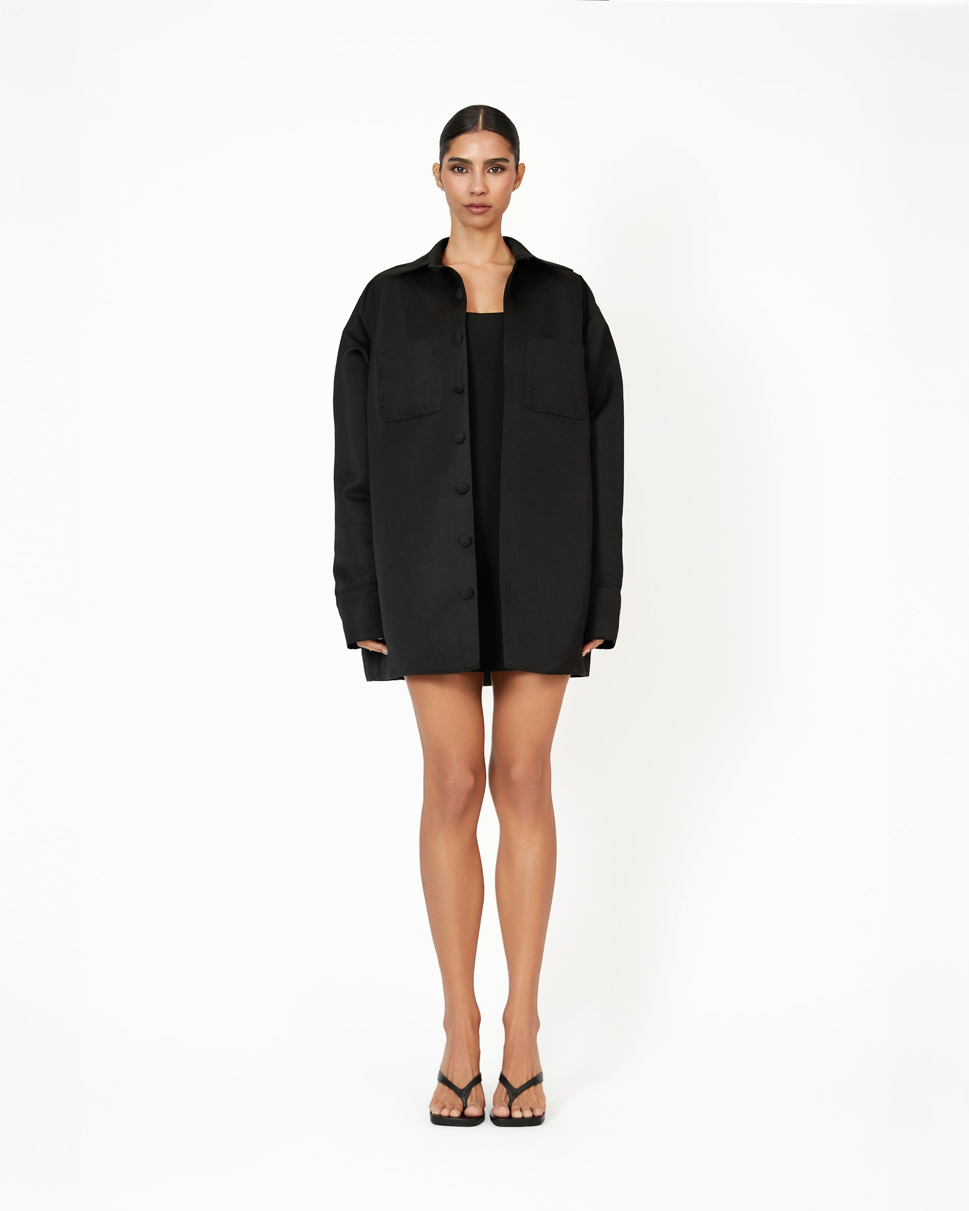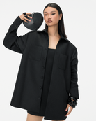 The Kye shacket is a luxurious oversized shirt jacket crafted from premium white suiting fabric, combining elegance and comfort. This piece features Khanum's embroidery on the two front pockets, adding a refined touch of detail. With its oversized fit, it offers a relaxed, modern silhouette, making it a versatile and sophisticated addition to your wardrobe. Perfectly balancing refined workwear and classic everyday style, the Kye shacket exudes timeless luxury and chic simplicity.
