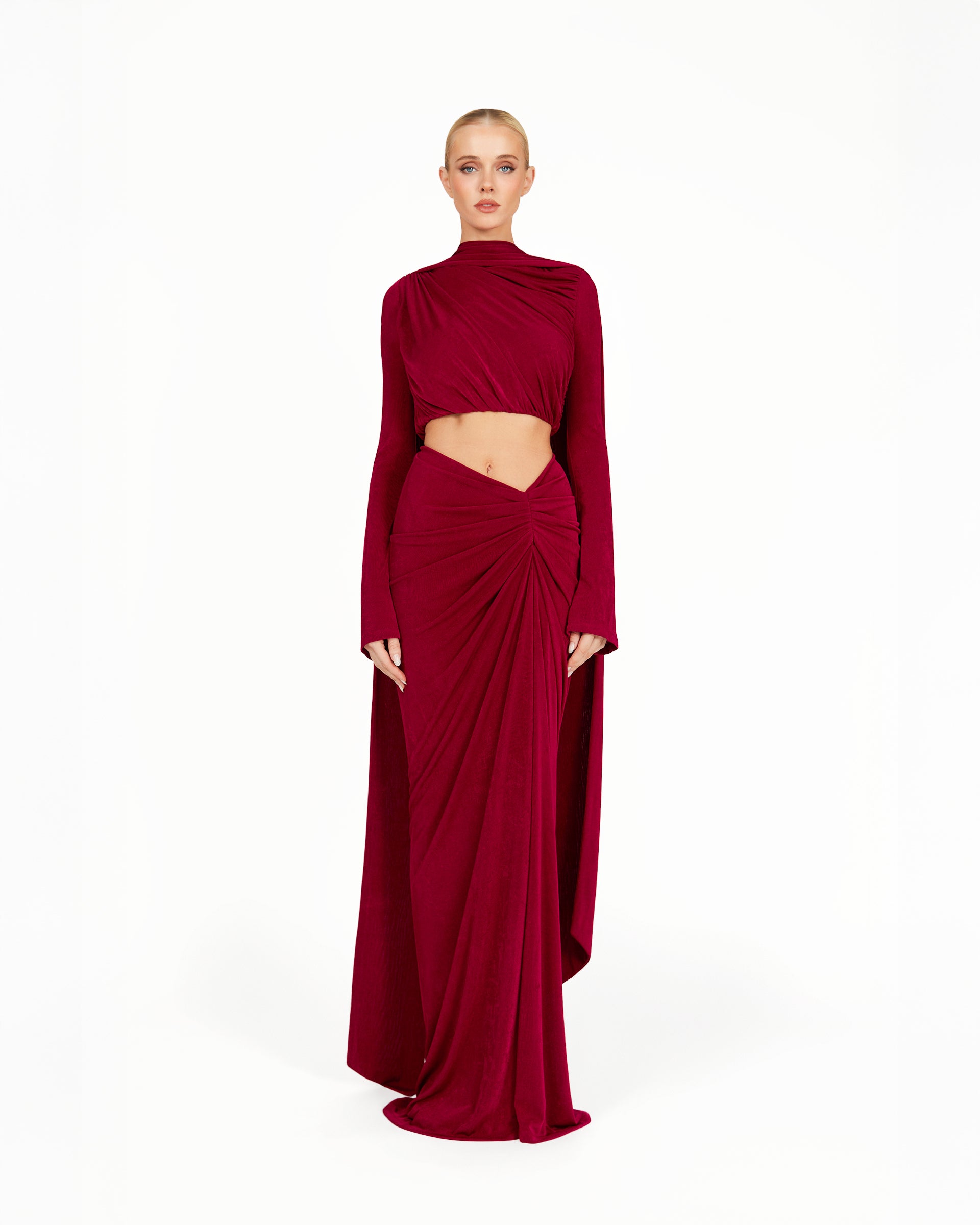 The Kherie Co-ord reimagines modern modest luxury. Made from our signature slinky textured jersey, this two-piece set features gathered detailing throughout, creating a graceful, flowing silhouette. Its elegant, modest design is perfect for evening events or stylish gatherings, offering effortless sophistication when paired with minimal accessories and slip-on heels.