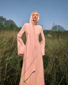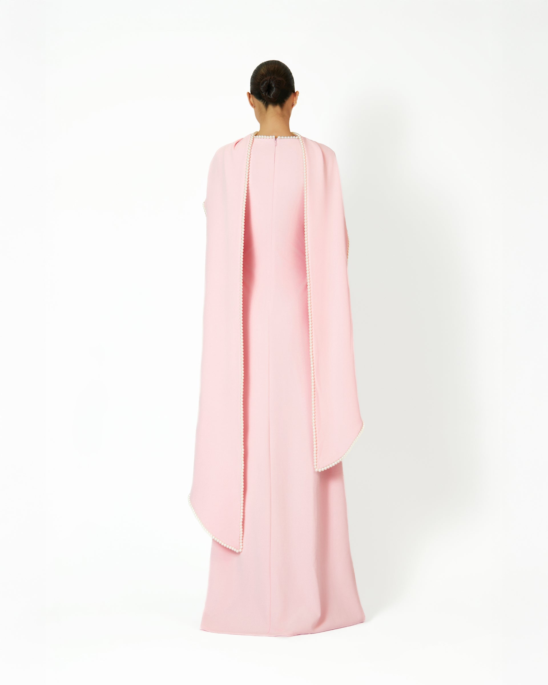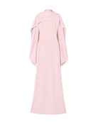 The Krace dress is the epitome of timeless elegance and refined beauty. Crafted from crepe scuba, it features slightly flared sleeves and an A-line silhouette that skims the figure perfectly. The scarf is detached from the dress to allow multiple ways to style, and is finished with a delicate pearl trim, imparting a touch of exquisite luxury. Pair with heels to allow the floor-length hem to sweep with poise and grace.