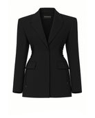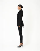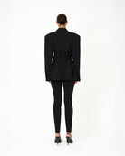 The Kalliste blazer is a masterclass in tailoring, designed to effortlessly merge structure with elegance. It offers a refined yet comfortable fit. The double-breasted front and inner button closure create a polished, secure silhouette, while subtle shoulder padding adds structure and sophistication. Fully lined for a smooth, luxurious drape, this blazer features double welt pockets and adjustable tie straps on both sides of the waist, allowing for a cinched or relaxed fit. Pair it with our Kalliste leggings or layer over a slip dress for an elevated look.