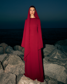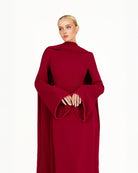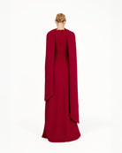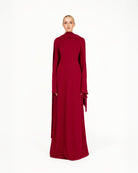The Krace dress in red is the epitome of timeless elegance and refined beauty. Crafted from crepe scuba, it features slightly flared sleeves and an A-line silhouette that skims the figure perfectly. The scarf is detached from the dress to allow multiple ways to style, and is finished with a delicate pearl trim, imparting a touch of exquisite luxury. Pair with heels to allow the floor-length hem to sweep with poise and grace.