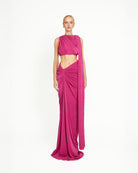 The Kalika Co-ord redefines luxury for the modern muse. Designed for the woman who commands attention without saying a word, this two-piece set is crafted from our signature slinky textured jersey. The top is artfully ruched throughout and the skirt mirrors this intention, detailed with delicate ruching and a floor-grazing sash. The sash is designed to be styled multiple ways, wrapped, draped, or across your neck offering a custom finish with every wear. Kalika is an ode to refined sensuality, style with sculptural earrings, layered bangles, and slip on heels.