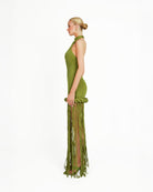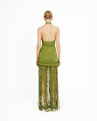 The Kiran Dress channels heritage with a bold, modern edge. Crafted from slinky textured jersey it features a high halter neck, open back, and floor-length fringe that flows with every step, complemented by rope detailing. The Kiran offers a sculpted yet comfortable fit that hugs the body in all the right places. Designed to move with ease and elegance, it’s a piece that turns heads from every angle. Ideal for evening events or special celebrations, the Kiran Dress is the embodiment of bold sophistication.