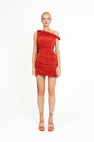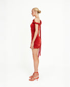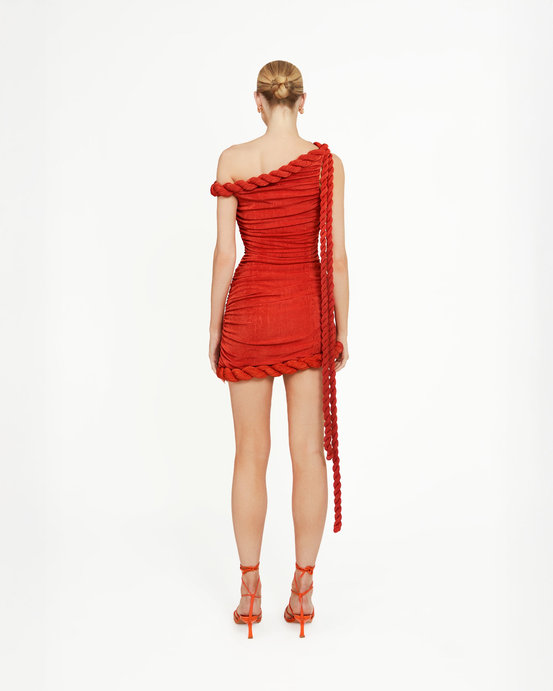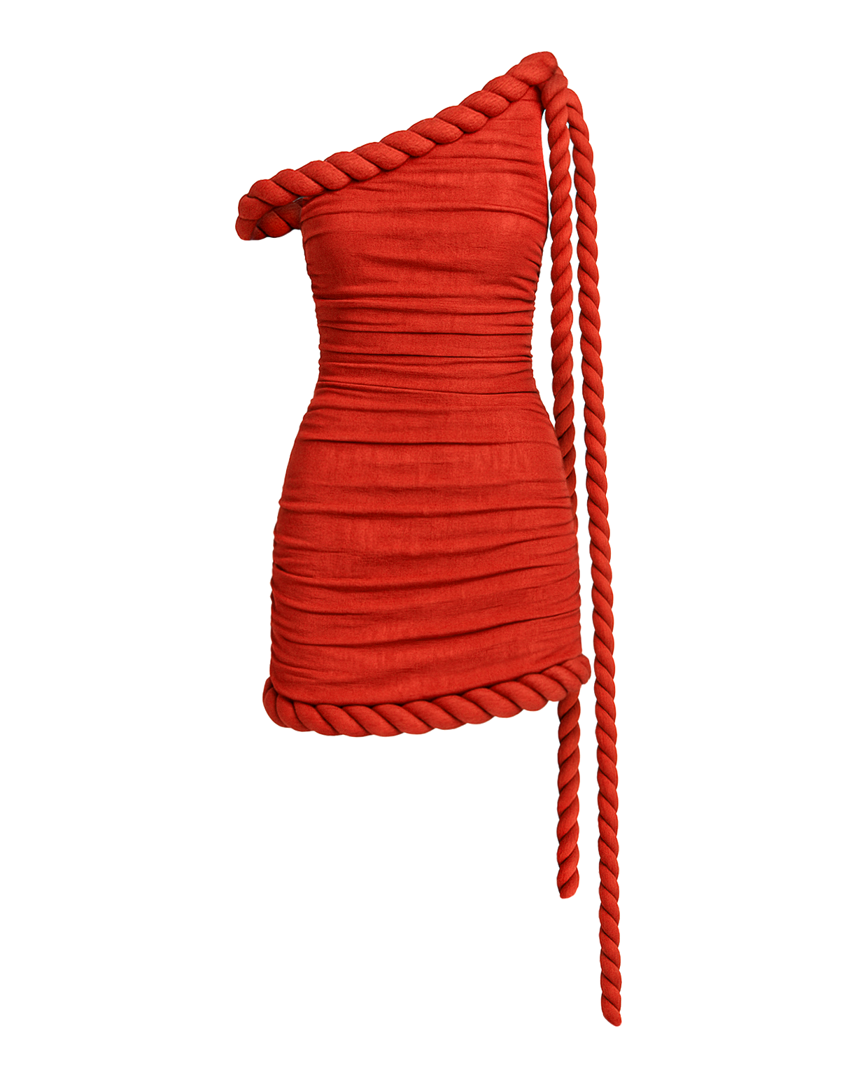 The Kumud Mini Dress is a celebration of modern heritage and effortless elegance. Crafted from super stretchy, fully lined slinky jersey, it hugs the body with a flattering silhouette shaped by delicate side ruching. With the artisanal rope details woven thoughtfully along the neckline, shoulders, and hem, offering texture, movement, and the chance to personalise your look. This is a dress made for those who move through life with confidence and grace, where every knot and fold tells a story. Perfect for sunlit days and warm evenings.