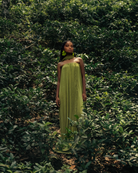 The Kushmita Dress is a celebration of effortless style rooted in heritage. Crafted from super stretchy, slinky textured jersey, this dress moves with you, embracing your silhouette with a loose, airy fit. The elasticated bandeau neckline sits comfortably, framed by delicate rope details that weave across the front, evoking the intricate craftsmanship and stories woven through our culture. Complete with a matching scarf to tie around your neck, this piece invites you to carry the warmth and soul of Bangladesh wherever you go.