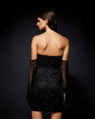 Khanum's strikes the right balance between statement and chic. This 'Kabiba' dress is made from black mesh and lightweight satin in a simple column silhouette and features strategically placed embellishment.
