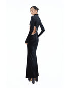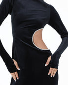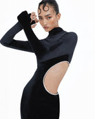 Our Kaudrey dress was designed with a confident, classy woman in mind. A classic floor length silhouette, with a cut out adorned in diamanté's, this dress is a timeless masterpiece perfect for any occasion. wear yours with statement diamanté's earrings to finish the look.