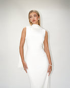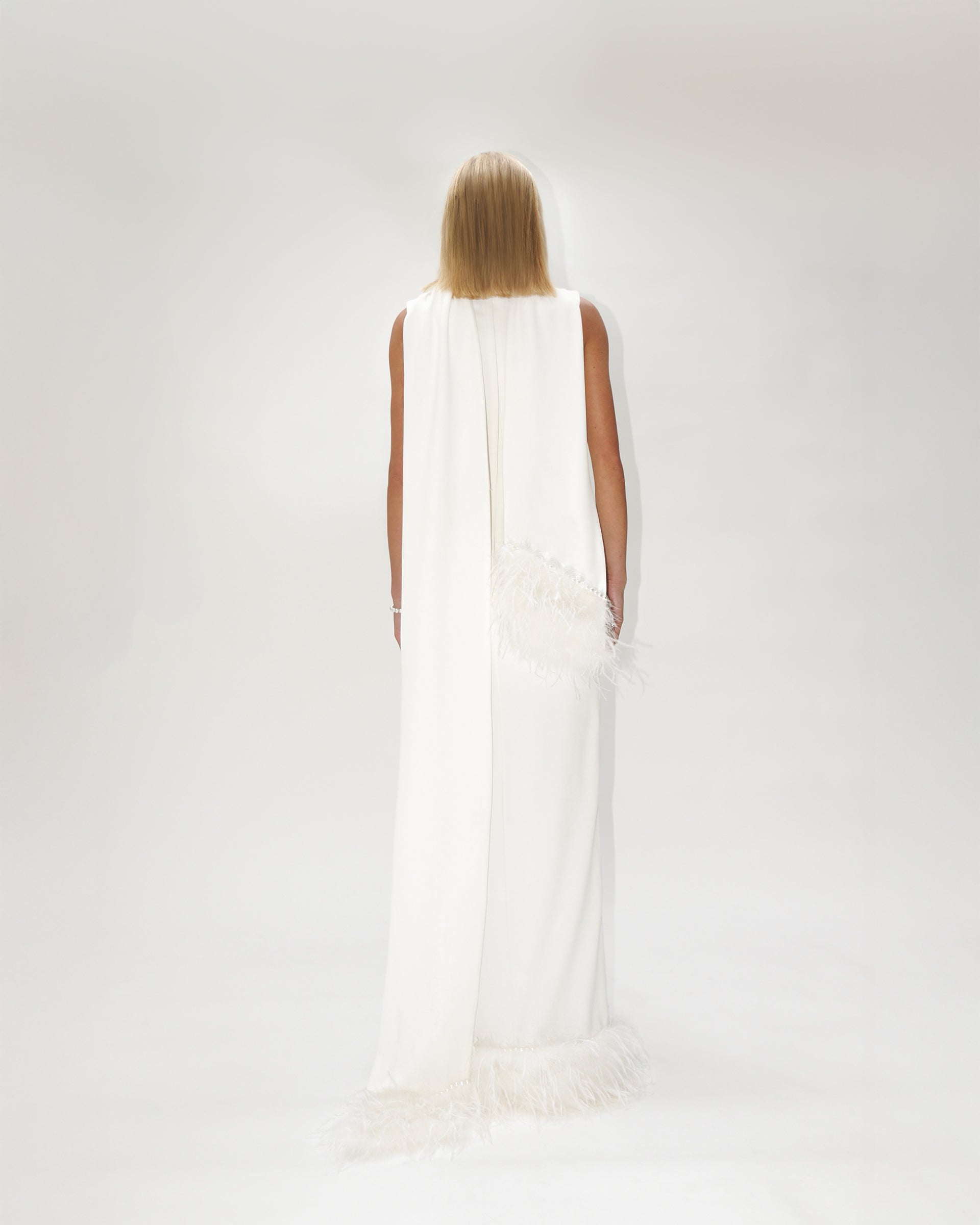 You'll want a calendar packed full of parties and events just so you can wear this Khanum's 'Kerena' wrap scarf dress. Using ivory crepe scuba, this gorgeous dress are adorned with feather trims and features a wrap over scarf. This dress is the definition of transitional and is undeniably a must have.