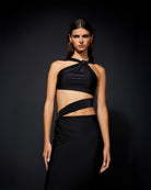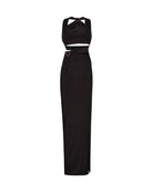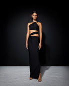 The 'Kivia' dress is made from panels of double lined lycra that are wrapped to create beautiful design. Designed for a figure-hugging fit, it has a halterneck, gold buckles and cutouts that reveal subtle peeks of skin.