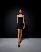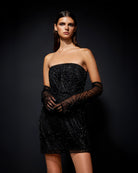 Khanum's strikes the right balance between statement and chic. This 'Kabiba' dress is made from black mesh and lightweight satin in a simple column silhouette and features strategically placed embellishment.