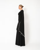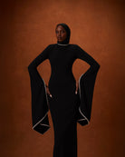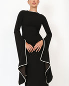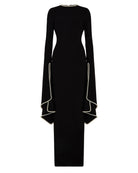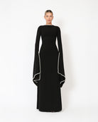 Elevate your evening looks with this elegant 'Kadela' gown. It's made from black stretch crepe scuba to allow for a flattering fit and features flared sleeves and a wide, long train to add drama to a simple and sophisticated style. Wear yours with statement earrings to add glamour to your look.