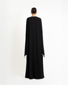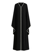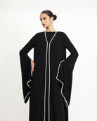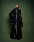 The Kayesha abaya, crafted from a flowing, floor-length silhouette, drapes effortlessly, offering a flawless fit with its subtle hook and eye fastening. The hand-stitched pearl borders along the sleeves and front add an exquisite touch of refinement. The Kayesha abaya is the ultimate blend of simplicity and opulence, perfect for those who seek timeless elegance with a contemporary twist.