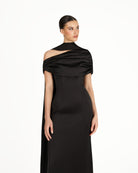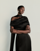 Introducing the Kiris Dress in black, a perfect fusion of elegance and modern sophistication. Crafted from luxurious satin, this dress features a gathered bardot neckline that effortlessly frames the shoulders, while the soft A-line silhouette flows gracefully, creating a timeless yet contemporary look. The satin fabric drapes beautifully, offering a smooth, flattering fit that contours the body with ease. Ideal for an evening affair or a refined celebration, the Kiris dress embodies understated luxury and chic simplicity, making it a standout piece for any occasion.